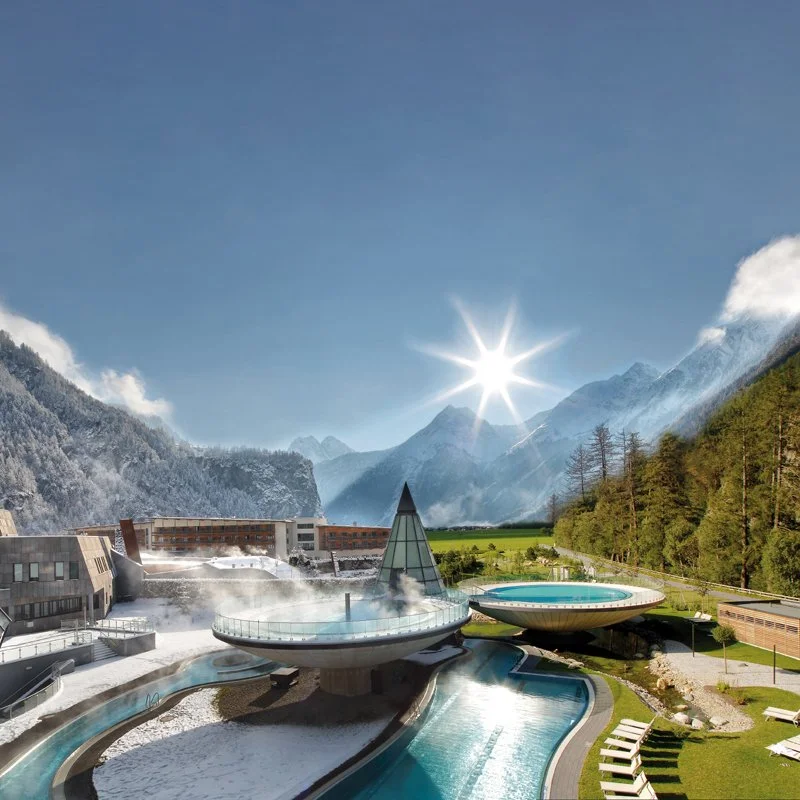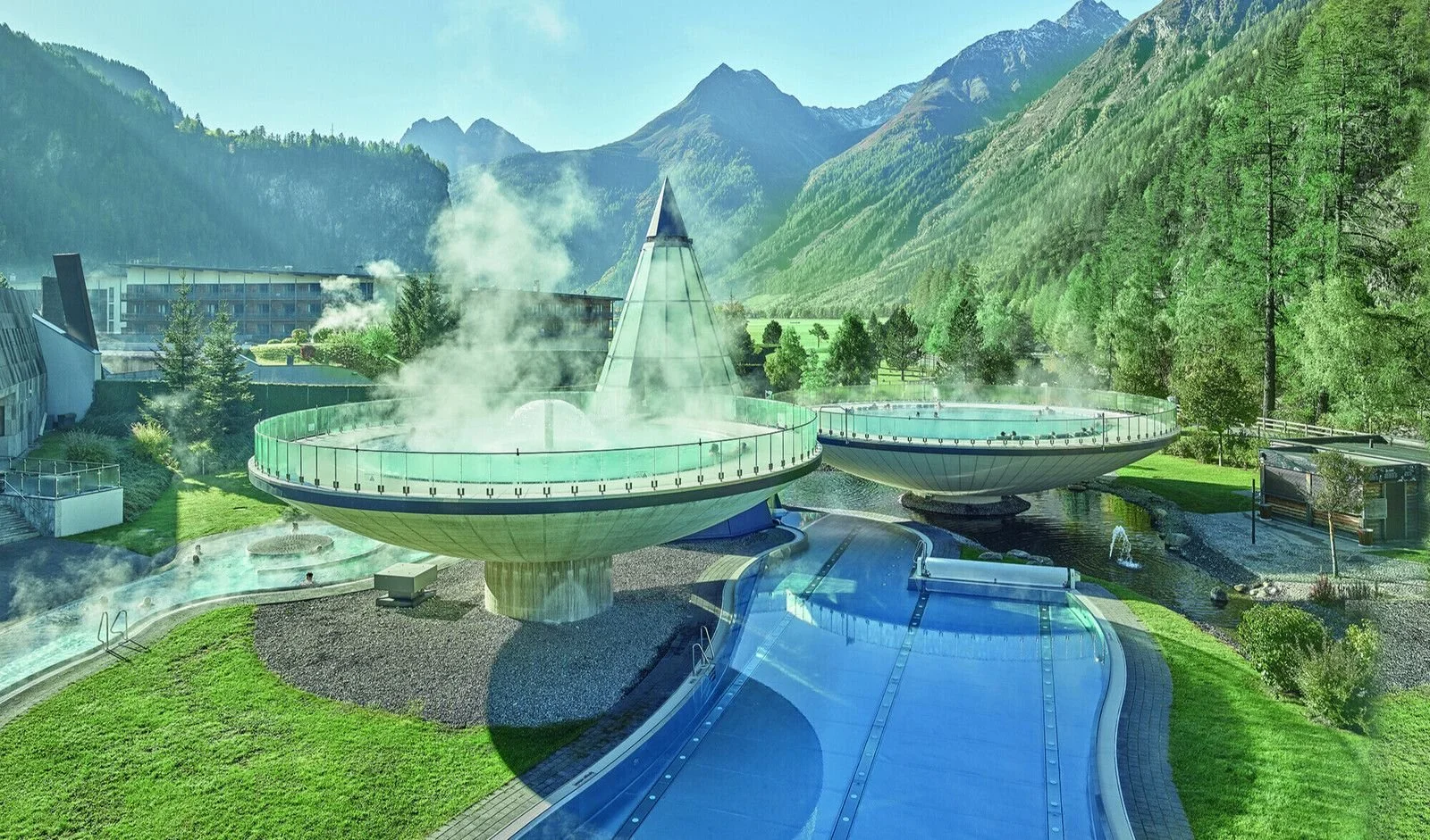 Aqua Dome у долині Ötztal (Тіроль) — це феєрія термальних вод, архітектурного футуризму, саун, SPA-ритуалів і емоцій.